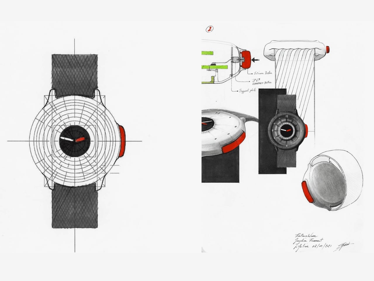Getting satellite communications equipment into a wearable is not an easy engineering problem. Futurewave brought together product designers, electronics engineers, and antenna experts, reimagining the integration process in terms of traditional wearables. The result reads as intended and practical without devolving into tactical-for-tactical’s sake. The big red button on the case transmits the SOS signal. O-Boy strips away heart rate sensors, notifications, and fitness tracking entirely, showing only the time. Everything else is there to save your life when nothing else can.