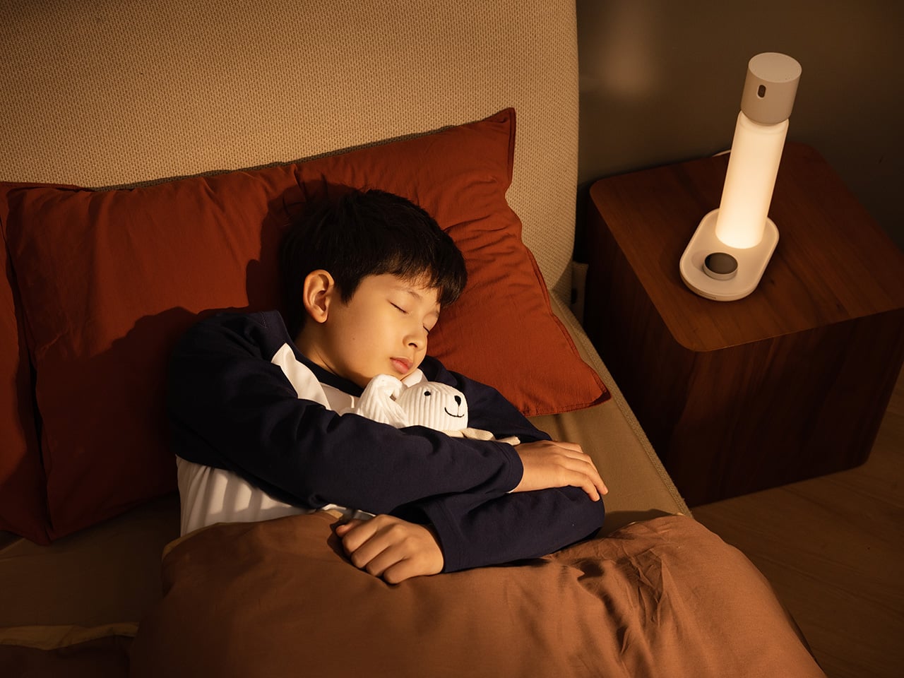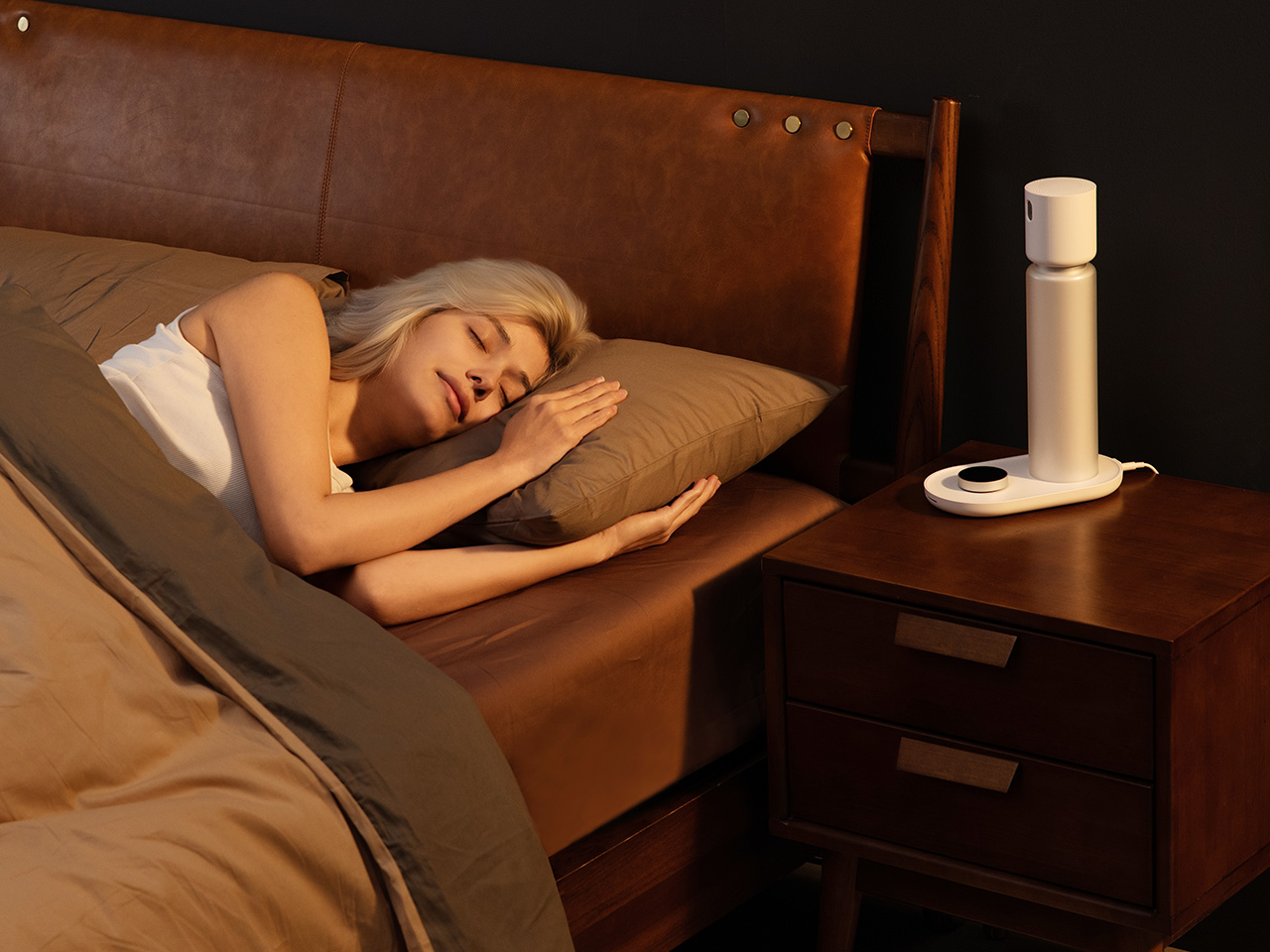 Because it works like a lamp, the light itself becomes part of how it supports your sleep. It adapts throughout the night, soothes as you sit and gently brightens as the morning approaches. In addition, it reads the environmental conditions of the room, captures the surrounding information that affects rest and gives you a complete picture of your night by combining physiological and environmental information.